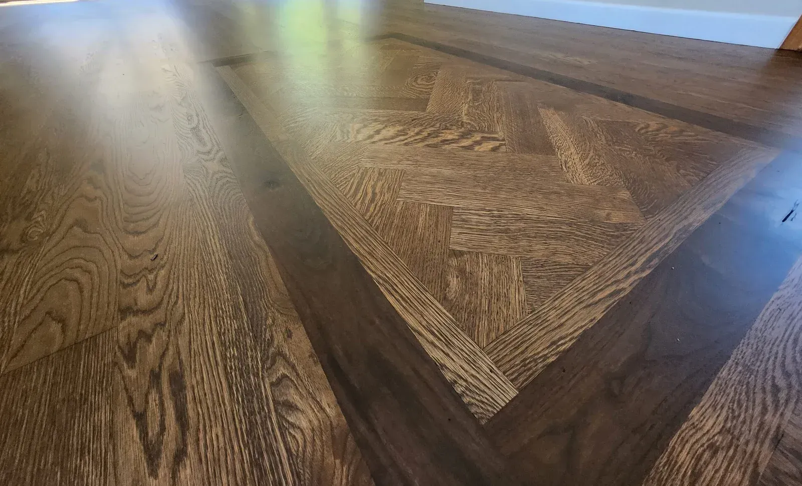 From herringbone and parquet to mixed-species borders and inlays, our custom design work sets your home apart. These artistic installs combine precision craftsmanship with bold visual detail, perfect for statement spaces.