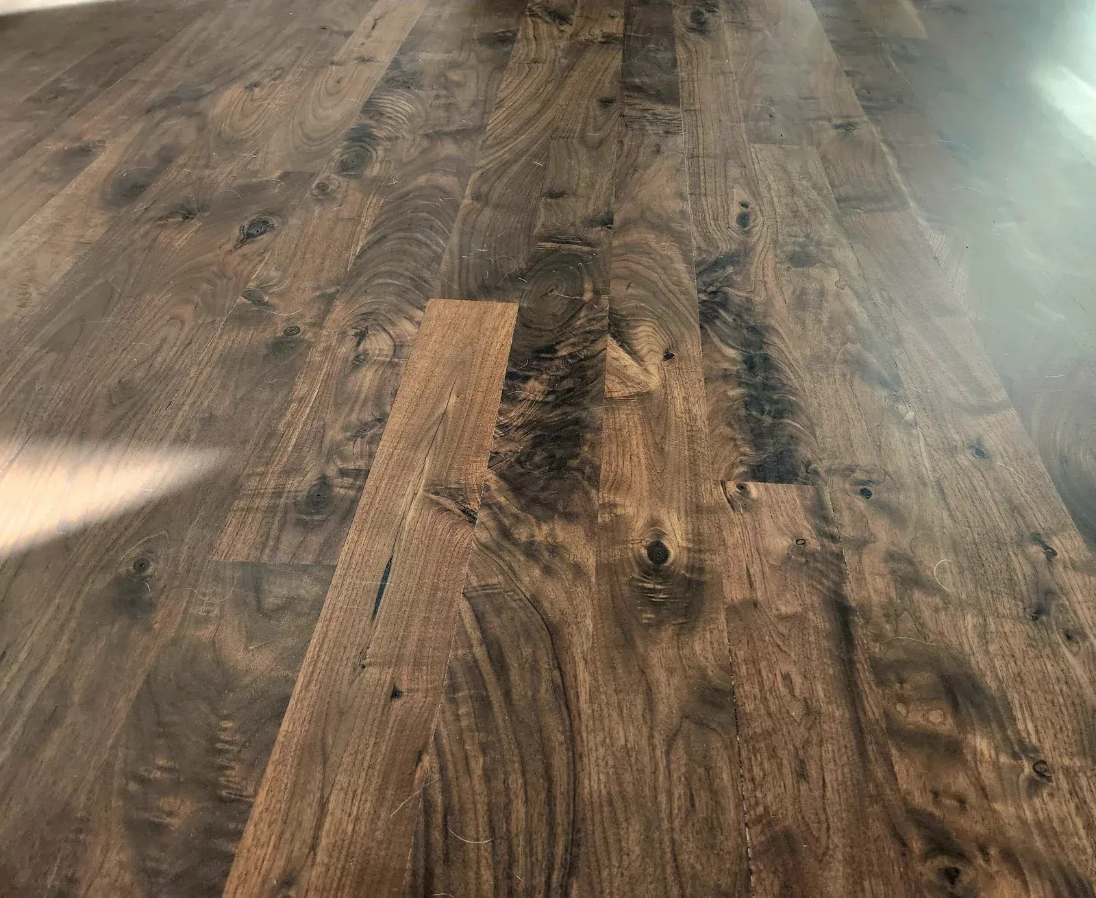 Professional installation for all wood types - solid hardwood, engineered flooring, custom inlays, herringbone patterns, and custom stair refinishing using oak, maple, walnut, and hickory.